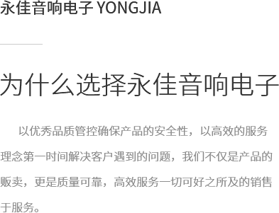 拉薩永佳音響電子有限公司 拉薩永佳音響電子有限公司坐落于美麗富饒的圣城拉薩,公司前身為拉薩昊成音響電子銷售有限公司,注冊(cè)資金為300萬元,成立于2010年3月公司地址位于西藏拉薩市貢布塘南側(cè)1號(hào)薩博廣場(chǎng)4-5、4-8號(hào)。拉薩永佳音響電子有限公司主營(yíng)專業(yè)舞臺(tái)音響設(shè)備、會(huì)議音響系統(tǒng)設(shè)備、公共廣播音響系統(tǒng)設(shè)備、網(wǎng)絡(luò)及監(jiān)控設(shè)備、多媒體教學(xué)設(shè)備、多媒體投影機(jī)、幕布、弱電線材、辦公設(shè)備、LED液晶顯示屏品種齊全、服務(wù)效率、拉薩